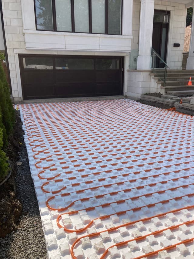 Installed a professional-grade PEX tubing layout using thermal insulation boards to ensure consistent heat coverage throughout the driveway. The layout supports even snow melting and prevents ice formation.